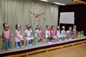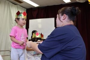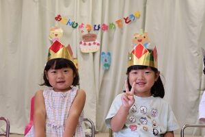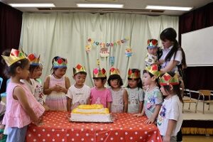 7月、8月生まれのお友達で誕生日会の日に欠席だった子も一緒にお祝いしました。
