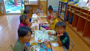 沢山遊んだ後は、お茶を飲んだり給食を食べたりしてゆったりと過ごしました(^^)/