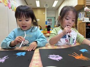 ストローで「ふ~」と息を吹きかけて、おもしろい模様が出来ました。