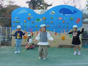 そのあとは、園庭に出て三輪車で遊んだり、縄跳びをしたりしました。