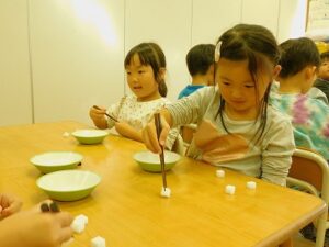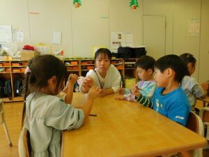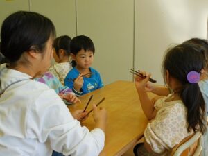 今日はキリン組のお友達に向け 箸指導を行いました☆ 栄養士の先生に箸の持ち方を教わり、 スポンジをつかむ練習をしました! ライオン組のお友達が箸を使っているので憧れもあり、 とても嬉しそうに箸を使っていました♪ Share this post Share on FacebookShare on Facebook Share on XShare on X Post navigationPreviousPrevious post:11月28日NextNext post:11月29日(土)関連記事12月4日(木)2025年12月4日12月1日(月)2025年12月1日発表会のお知らせ NO12025年12月1日写真販売のお知らせ2025年12月1日11月29日(土)2025年11月29日11月27日(木)2025年11月27日