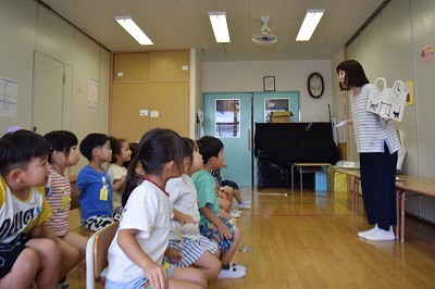 今日は、6月生まれのお誕生日会でした。 みんなそれぞれ、質問に答えることが出来ました。 王冠をかぶって、みんなにお祝いされて、大きなケーキを前にろうそくを消すことが出来ました。       …
