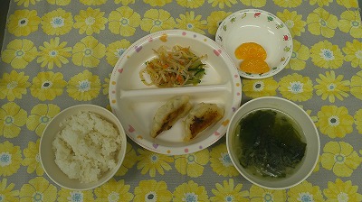 ~今日のお給食~ ・餃子 ・もやしのナムル ・ごはん ・中華スープ(わかめ・コーン・ネギ) ・みかん           ~今日のおやつ~ ・牛乳 ・お好み焼き &nbs…