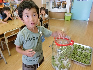 今日のライオン組は、体操指導がありました。 組体操の練習を頑張りました。 午後は、昨日、理事に小梅をいただいたので、 昨日のうちに梅をきれいに洗って、黒いヘタをつまようじで一つずつとりました。 それをベラン…