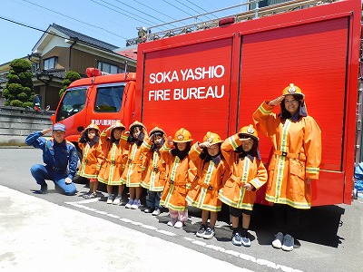 今日キリン、ライオン組のお友達は 谷塚ステーションに消防署見学に行きました!       署員の方たちに消防車や救急車の中を見せてもらい、 どんな道具があるのか、どういうときに使うかなど 説…