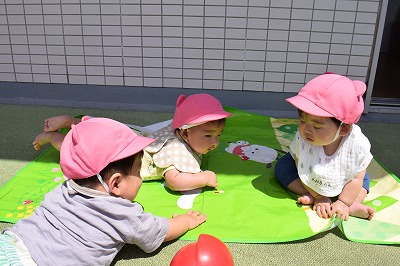 今日ラッコ組のお友達は テラスで外気浴を楽しみました♪   園庭で幼稚部のお友達が体操指導を行っているのを興味深そうに眺めたり、 ボールを転がしたりと 遊びました★       &…