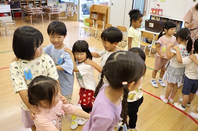 今日キリン組のお友達は 幼稚部のみんなで夏祭りの盆踊りの練習を行いました★     イルカ組のお友達に教えてあげながら 楽しそうに踊っていました♪   そのあとは園庭で遊びました! &nbs…