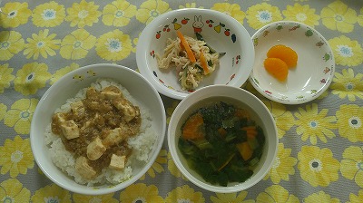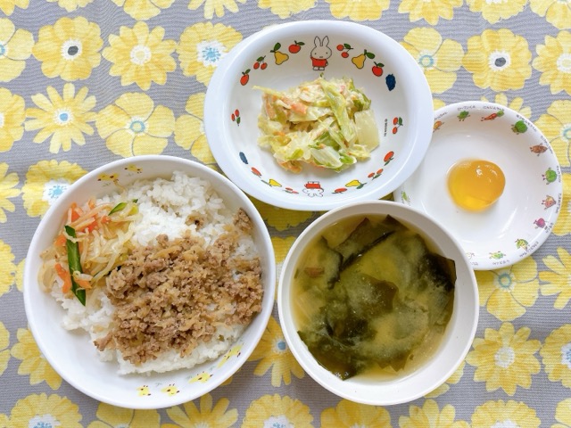 ~今日のお給食~ ・切り干し大根のビビンバ ・キャベツと鶏ささみのカレー風味サラダ ・味噌汁(たまねぎ・わかめ・なめこ) ・ミニゼリー ~今日のおやつ…