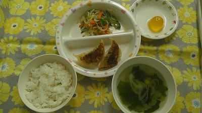 ~今日のお給食~ ・餃子 ・もやしの中華和え ・ごはん ・中華スープ(わかめ・コーン・ねぎ) ・ミニゼリー ~今日のおやつ~ ・牛乳 ・お好み焼き &…