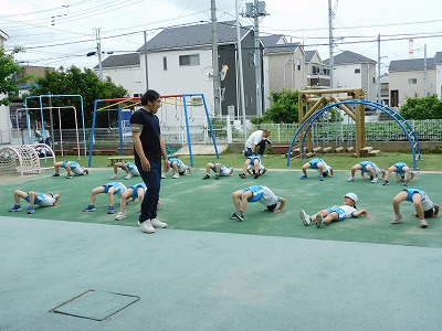 今日は体操指導を行い、 ライオン組のお友達は組体操に向け、ブリッジや片手バランスなどの 練習を行いました! 頭もあげられるようになってきました♪ ライオン組のお友達が好きな爆弾ゲ…