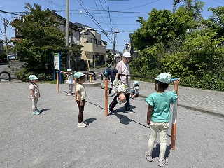 今日のパンダ組は、辰井川沿いをお散歩しました。 幼稚部のお兄さん、お姉さんと一緒に手を繋いで、お散歩することが出来ました。 道路を横断する時は、交通ルールを守って手をあげることもできるようになりました。 &…