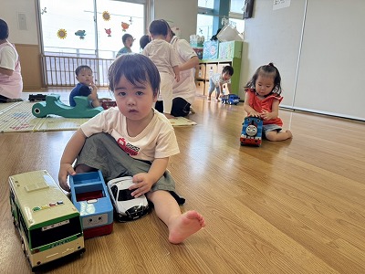 今日ラッコ組のお友達はプール遊びや室内遊びをして過ごしました♪       お部屋では音が鳴るおもちゃが人気で 振って鳴らしたりボタンを押して 音楽が鳴るおもちゃで楽しんでいました &nbs…