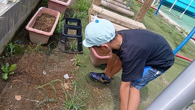 今日は保育部さんは園庭遊び、幼稚部さんは 水遊びを行いました(^_-)-★ お友達と水をかけ合いながら仲良く遊んでいました! 虫探しを楽しむお友達もいました! 幼稚部さんが遊んでいる様子を窓から覗いて見ていました♡ いっ…
