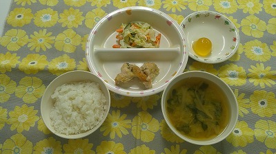 ~今日のお給食~ ・鶏肉の青のり焼き ・コールスローサラダ ・ごはん ・味噌汁(もやし・こまつな・えのきたけ) ・ミニゼリー ~今日のおやつ~ ・牛乳 ・ひやむぎ …