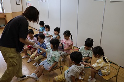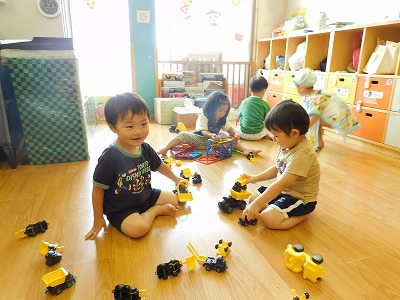 今日イルカ組のお友達はライオン組のお友達と水遊びを 楽しみました♪ ライオン組のお友達が、イルカ組のお友達におもちゃの使い方を教えてあげたり 一緒に遊んだりと とても楽しそうにしていました! …