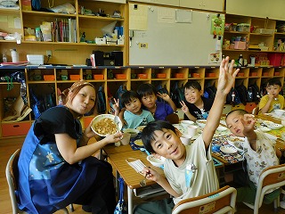 今日は、保育士体験がありました。 午前中は、一緒にプール遊びをしました。 保護者の方も一緒になって、ずぶ濡れになり、保育士を体験していただきました。 とても楽しそうでした。 子どもたちと一緒にお給食を食べて…