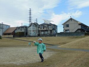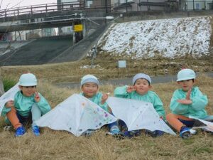 治水緑地に行き、自分たちで絵を描いて模様をつけた