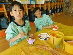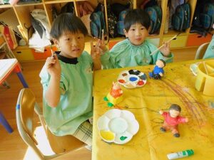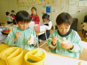 普段使う機会が少ない紙粘土と絵の具に