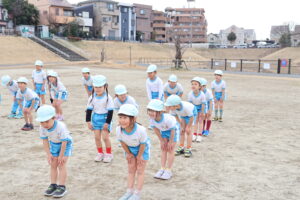 園長先生のお話を聞いて、準備体操をして、気合も十分💪