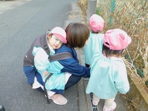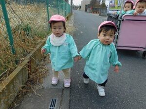カートに乗ったり、お友達と一緒に手を繋いだりして、