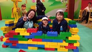 大きなレゴブロックを組み立てたり、レーシングカーを作って走らせてみたり、