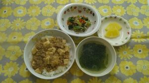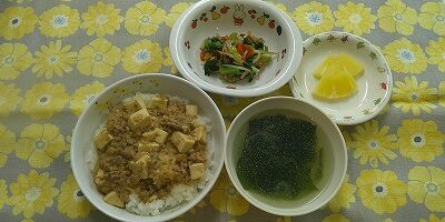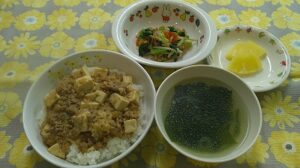 ~今日のお給食~ ・マーボー豆腐丼 ・もやしの中華和え ・中華スープ(春雨・わかめ・にんじん) ・パイン ~今日のおやつ~ ・豆乳 ・ホットケーキ Share this post Share on FacebookShare on Facebook Share on XShare on X Post navigationPreviousPrevious post:3月17日(火)NextNext post:3月25日関連記事3月25日2026年3月25日3月18日2026年3月18日3月6日2026年3月6日3月5日2026年3月5日3月4日2026年3月4日3月2日2026年3月2日
