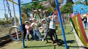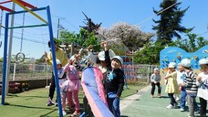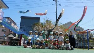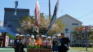 立派な鯉のぼりが園庭で泳いでいます。
