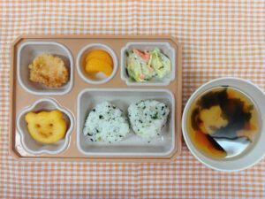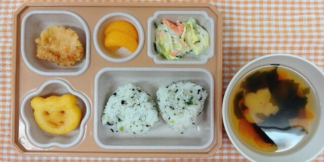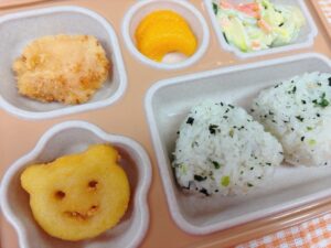 ~今日のお給食~ ・チキンカツ ・スマイルポテト ・コールスローサラダ ・わかめおにぎり ・すまし汁(花麩・わかめ・にんじん) ・みかん ~今日のおやつ~ ・牛乳 ・桜クッキー Share this post Share on FacebookShare on Facebook Share on XShare on X Post navigationPreviousPrevious post:4月8日(水)NextNext post:次の投稿関連記事4月8日2026年4月8日4月7日2026年4月7日3月31日2026年3月31日3月25日2026年3月25日3月23日2026年3月23日3月18日2026年3月18日