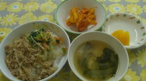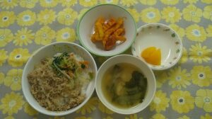 ~今日のお給食~ ・切干大根のビビンバ ・じゃがてり ・味噌汁(わかめ・なめこ・油揚げ) ・モモ ~今日のおやつ~ ・豆乳 ・マカロニきな粉 Share this post Share on FacebookShare on Facebook Share on XShare on X Post navigationPreviousPrevious post:前の投稿関連記事4月9日~お花見弁当~2026年4月9日4月8日2026年4月8日4月7日2026年4月7日3月31日2026年3月31日3月25日2026年3月25日3月23日2026年3月23日