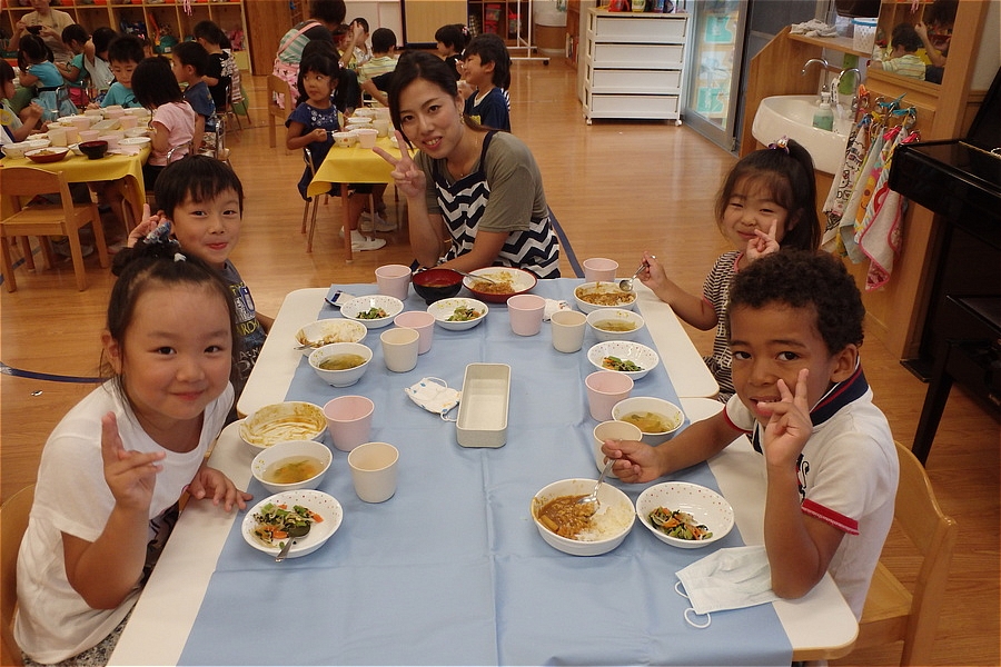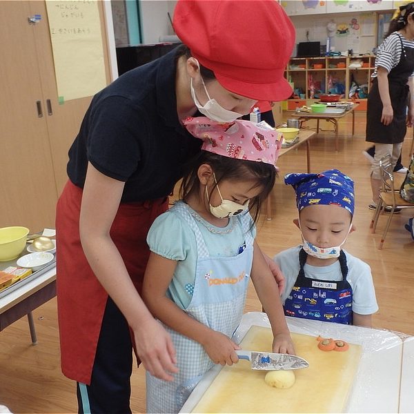 また食育の一環として、料理の素材を学び、子ども達の「食べ物」への関心と理解を深め、バランスよく食べることの大切さ、健康な体づくりについて学びます。
