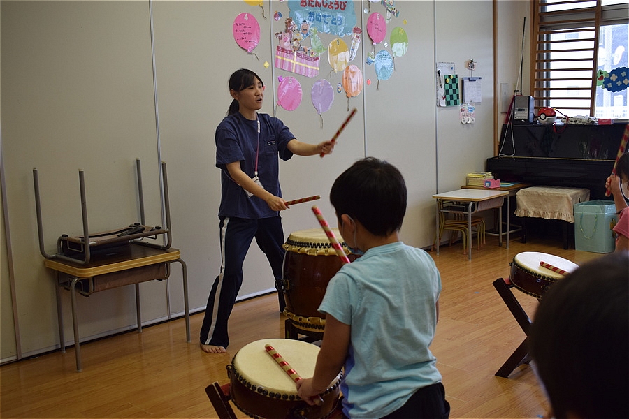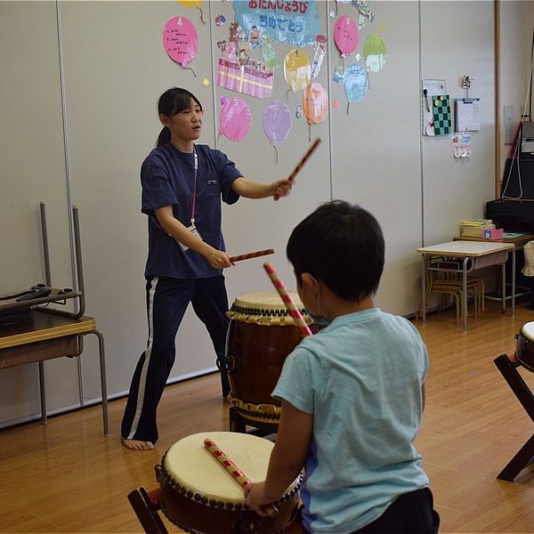 情操教育の一環として音楽活動を行い、楽器を用いてのリズム遊びなど楽しい時間を過ごします。また、日本古来の楽器などにもふれ、日本の伝統文化を学びます。