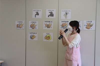 今日は午後の時間に手洗い指導と避難訓練がありました 手洗い指導では幼稚部さんクラスごとに看護師の先生が手洗いの大切さや 歌に合わせて手洗いの仕方を教えてもらい、保育者と一緒になって真似をしながら 取り組みました 手洗いの…