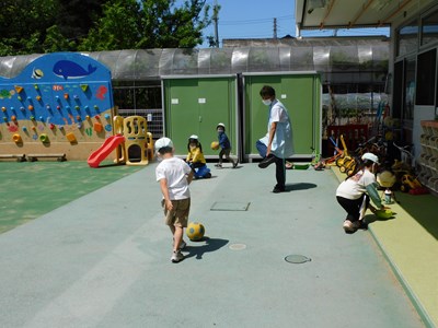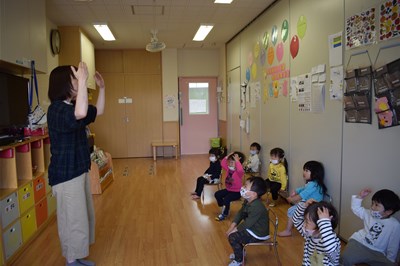 今日イルカ組のお友達は英語指導、 プチ体操がありました。 英語指導が始まってから1ヶ月が経ち、 子ども達も慣れてきたようで、音楽に 合わせて手を叩いたり、ゆりこ先生…