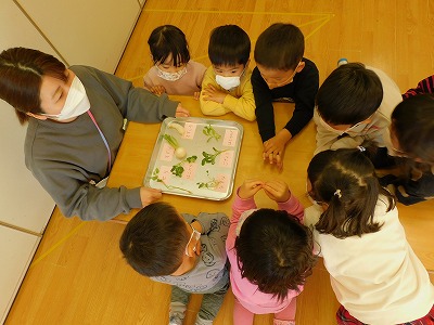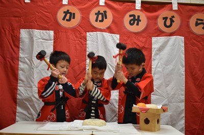 今日は鏡開きがありました。 鏡開きは、みんなの健康や幸せを願って鏡もち 割って頂く日です。 子ども達は由来を聞き、「そうなんだ~!!」と 興味深々になって話を聞いて…