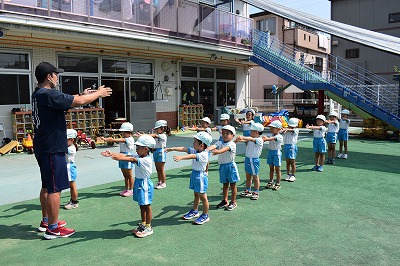 今日キリン組のお友達は体操教室がありました。 怪我がないようにしっかりと準備体操をします! 準備体操をした後は、てっちゃん先生が 「りんご好きな人!」等とテーマを出してくれるので…
