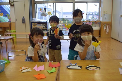 今日、幼稚部のお友達はお部屋の中で 折り紙やぬりえをして過ごしました! 折り紙の本を見ながら、「こうかな?」 「ステッキを作ろう!」など作りたいものを 見つけ、制作を楽しんでいま…