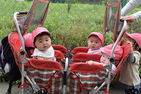 今日ラッコ組のお友達は園周りを お散歩してきました。 今日は外の気温も丁度よく カートにゆらゆら揺られながら 気持ちよくお散歩です♪ 歩行ができるよう…