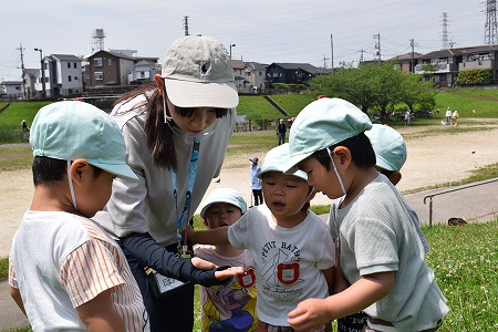 今日は久しぶりの晴天! イルカ組のお友達は治水緑地に行きました。 着くと草むらの中を早速探索! 保育者がバッタを見つけると 「どれどれ~?」と集まって 観察していました! &nb…