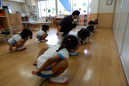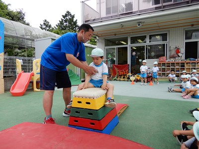 今日、キリン組のお友だちは 体操教室がありました! まずは準備体操です。 怪我をしないようにしっかりと体を 動かします(^.^) 準備体操のあとは跳び箱とケンステッ…