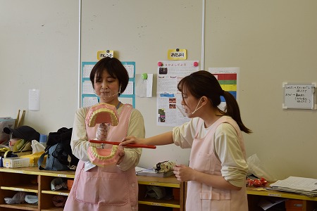 今日は、幼稚部対象に看護師さんより歯磨き指導がありました。 各クラスお話を良く聞きながら、歯ブラシの持ち方や 歯磨きの仕方を教えてもらいました☆ よく磨けていない所…