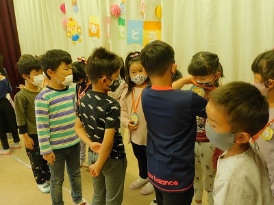 今日は進級式を行ないました♪ 各クラスできるようになったことを発表しました! パンダ組のお友達は ピアニカで「かえるのうた」を演奏しました☆ ピアノにあわせ、とっても上手に演奏す…