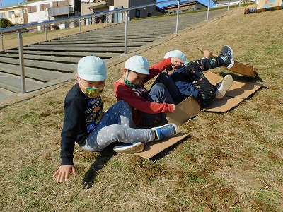 今日は園庭で遊びました♪ 縄跳びをしたり、小さいお友達は滑り台や 乗り物に興味を示し遊んでいました! 天気がよく、芝生スペ…