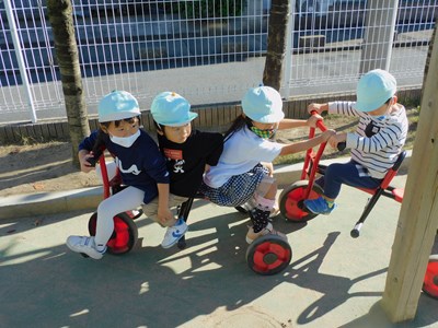 今日は園庭で遊びました。 お姉さんが手をひいてくれて、歩行の練習をしたり みんなで三輪車や遊具を使って遊びました♪ 来週も天気の良い日が続くといいね☆