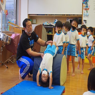 今日のキリン組の友達は体操教室に参加しました。 岩崎先生に補助してもらいながらマットの上で前転を練習しました☆ 来週の体操教室も楽しみだね♪