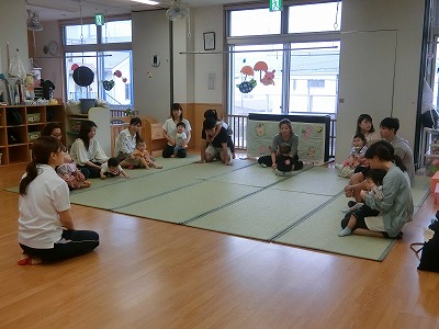 今日は保育参加を行い、 たくさんのお友達、保護者の方が参加してくれました♪ ラッコ組のお友達は 普段行っている朝の会の様子や お父さん、お母さんと一緒にふれあい遊びをしました☆ …