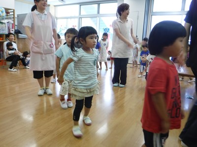 今日は、ライオン組のお友達は夏祭りのリハーサルに参加しました(*^^*) コバトン音頭、ドラえもん音頭の曲にあわせて太鼓の練習をしました♪ お返事や、掛け声を大きな声で言う事が出来ました!! …