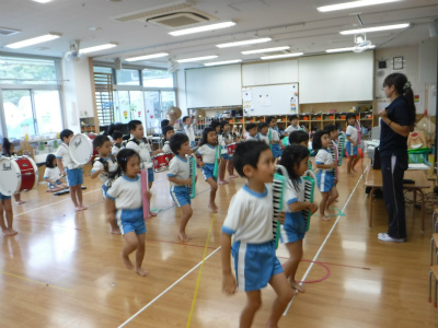 今日幼稚部のお友達は谷塚文化センターで 運動会の練習をしました(^^)/ 最初にマーチングの練習を行いました!! みんな一生懸命頑張って…