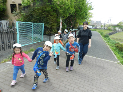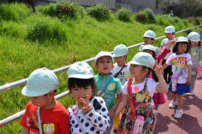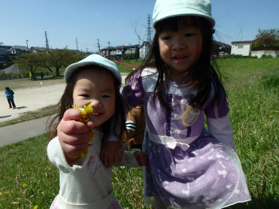 今日は幼稚部、保育部のみんなで治水緑地へお散歩に行きました♪ ポーズもきまってかわいいですね(^^) 治水緑地ではたんぽぽの綿毛を飛ばしたり、 先生と鬼ごっこをしたりして遊びました。 子ども達の足が早く、先生も追いかける…