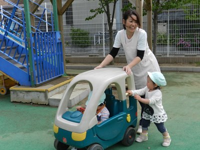今日は保育部、幼稚部のお友だちみんなで園庭で遊びました! みんなで押し合いっこをしながら順番に 車に乗って遊びました(^^)  …