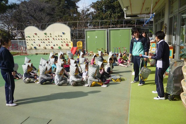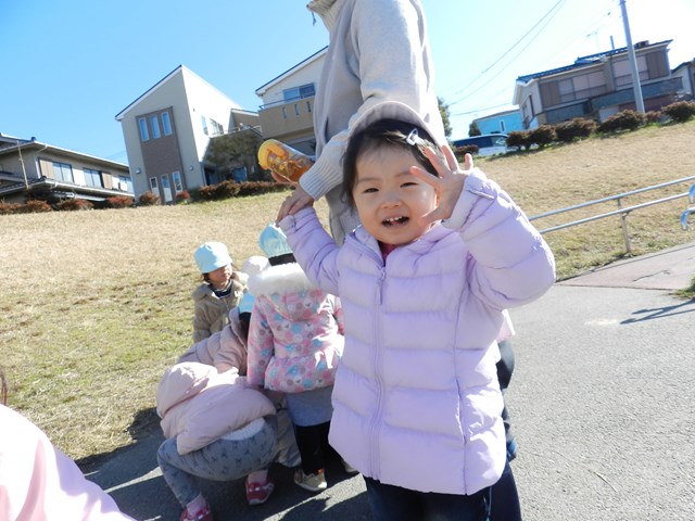 本日、イルカ組さんは桃の木公園へお散歩に行きました。 今日は駆けっこをして遊びました。 広い公園内をみんなで駆け回りました。 一息ついて遊具やすべり台でも遊びました。 寒さに負けずとっても元気なイルカ組さんでした。 &n…
